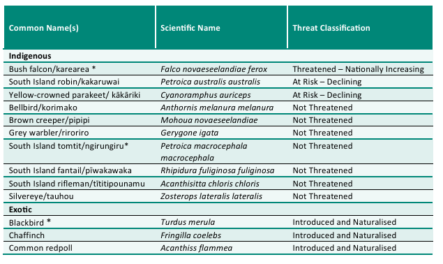 The first Wildlands survey was conducted in March 2017 to set as our baseline, a Bird and Bat survey was carried out to find out what species are in the region. There were a number of indigenous birds observed such as Bellbirds, Grey warbler, NZ fantail, Tomtit, Yellow-crowned parakeet and South Island robin. Also observed were Rifleman which are classified as declining. Kea and Kārearea (New Zealand falcon) which are classified as Nationally Endangered and Nationally Vulnerable have also been seen in the valley. Unfortunately, no Long-tailed bats were observed.
